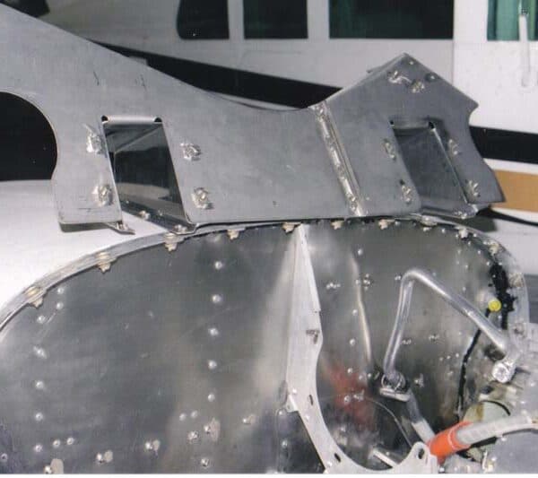 STC #SA00251DE: This modification protects the aluminum structure behind the canted bulkhead inside each engine nacelle. The stainless steel shields prevent hot exhaust gases leaking from the turbo and wastegate joints causing exfoliating corrosion on the engine beams and webs.